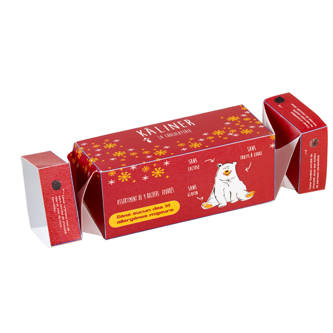 La chocolaterie Kâliner, spécialisée dans le chocolat bio sans aucun des 14 allergènes majeurs, vous présente un assortiment original de rochers chocolat fourrés .